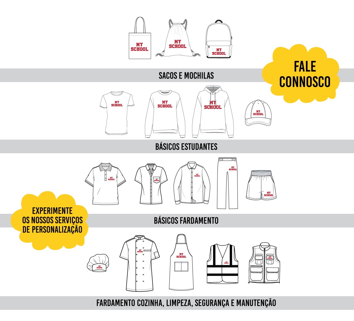 Fale connosco para personalizar o pack da sua escola com os produtos da sua escolha